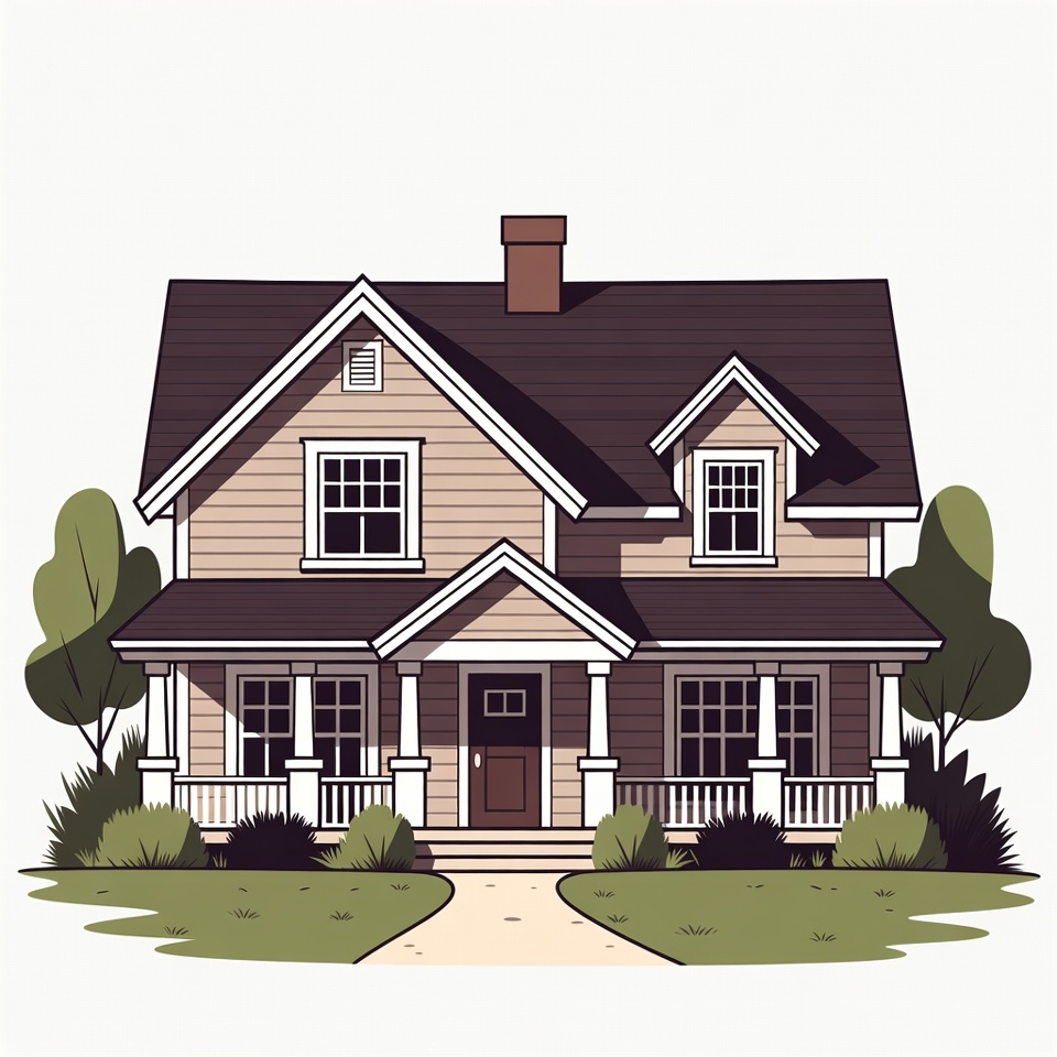 Illustrated Suburban House with Porch