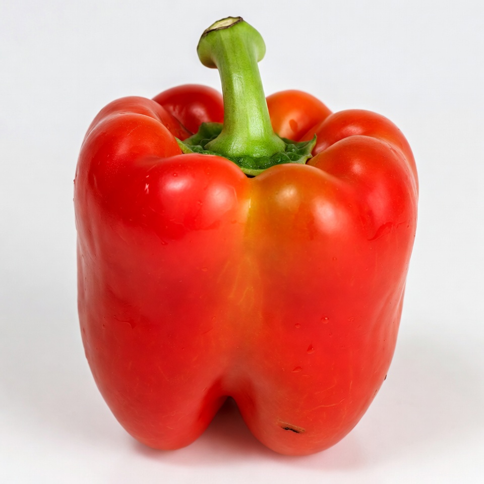 bell pepper, capsicum, food, fresh vegetable, glossy, green stem, healthy eating, isolated, produce, raw pepper, red pepper, vegetable, white background, red bell pepper