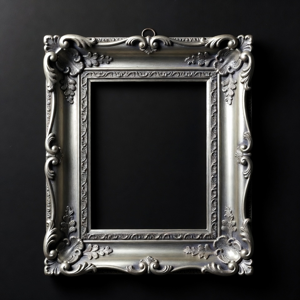 art frame, baroque frame, black background, decorative frame, elegant frame, empty frame, floral carving, gold frame, hanging frame, isolated background, ornate frame, picture frame isolated, rococo frame, scrollwork frame, silver frame, vintage frame, picture frame