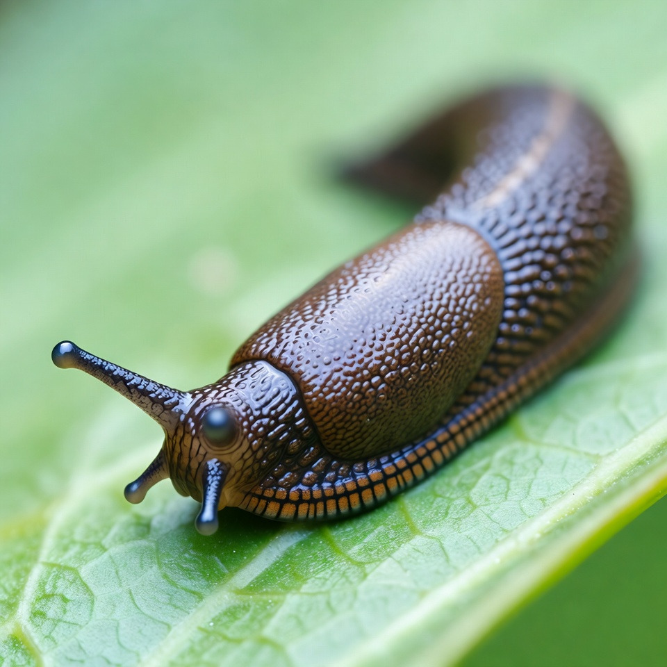 antennae, brown slug, closeup, crawling, garden slug, green leaf, invertebrate, macro photography, mollusk, nature, outdoor, slimy, snail without shell, textured body, wildlife, slug
