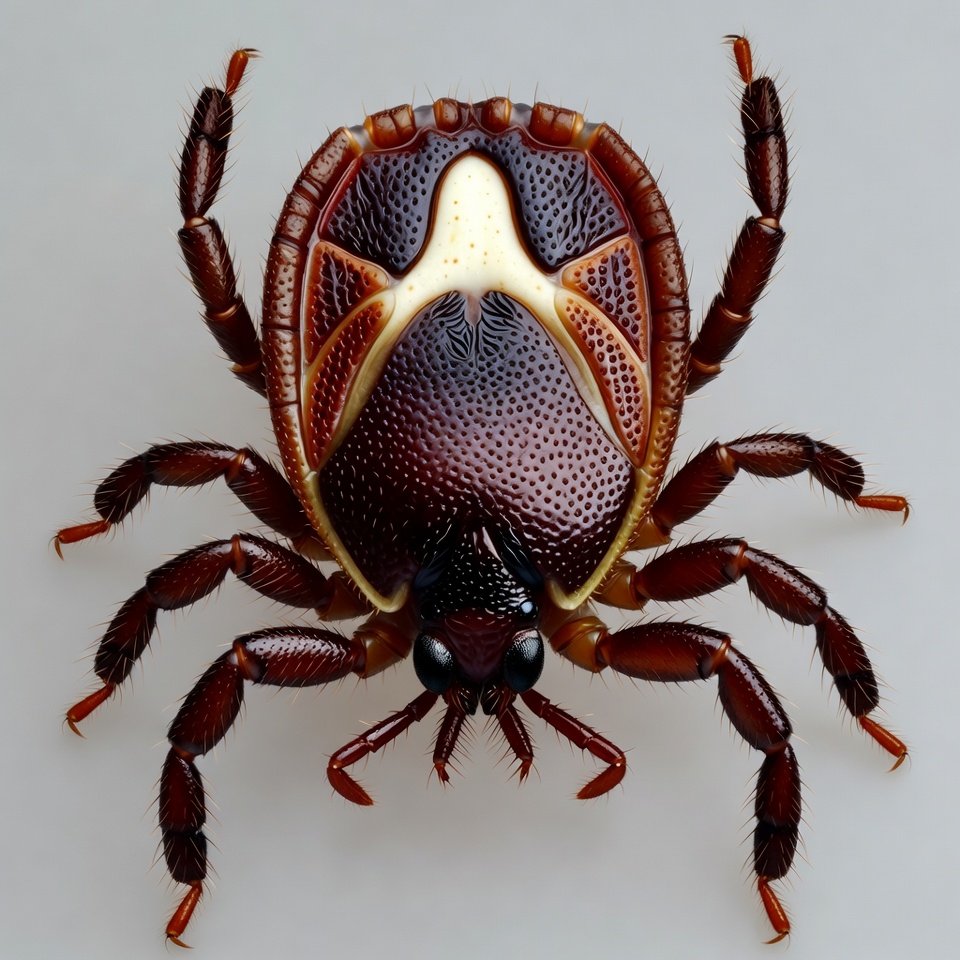 Ixodes, arachnid, brown body, bug, claws, close-up, eight legs, hard tick, insect, isolated background, legs, macro photo, parasite, red tick, white background, wildlife, yellow scutum, tick