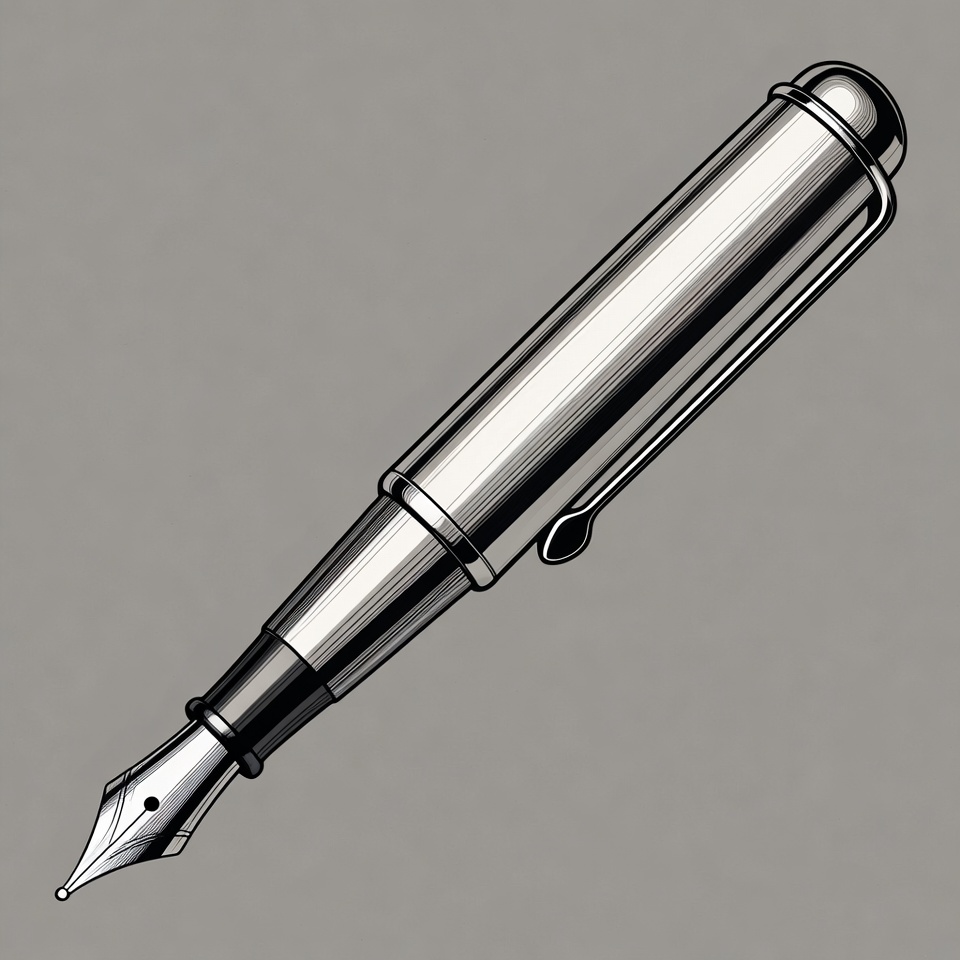 black nib, calligraphy pen, clipart, diagonal view, drawing, graphic, ink pen, isolated background, luxury pen, metal pen, pen illustration, shiny pen, silver, silver pen, vector pen, writing pen, fountain pen