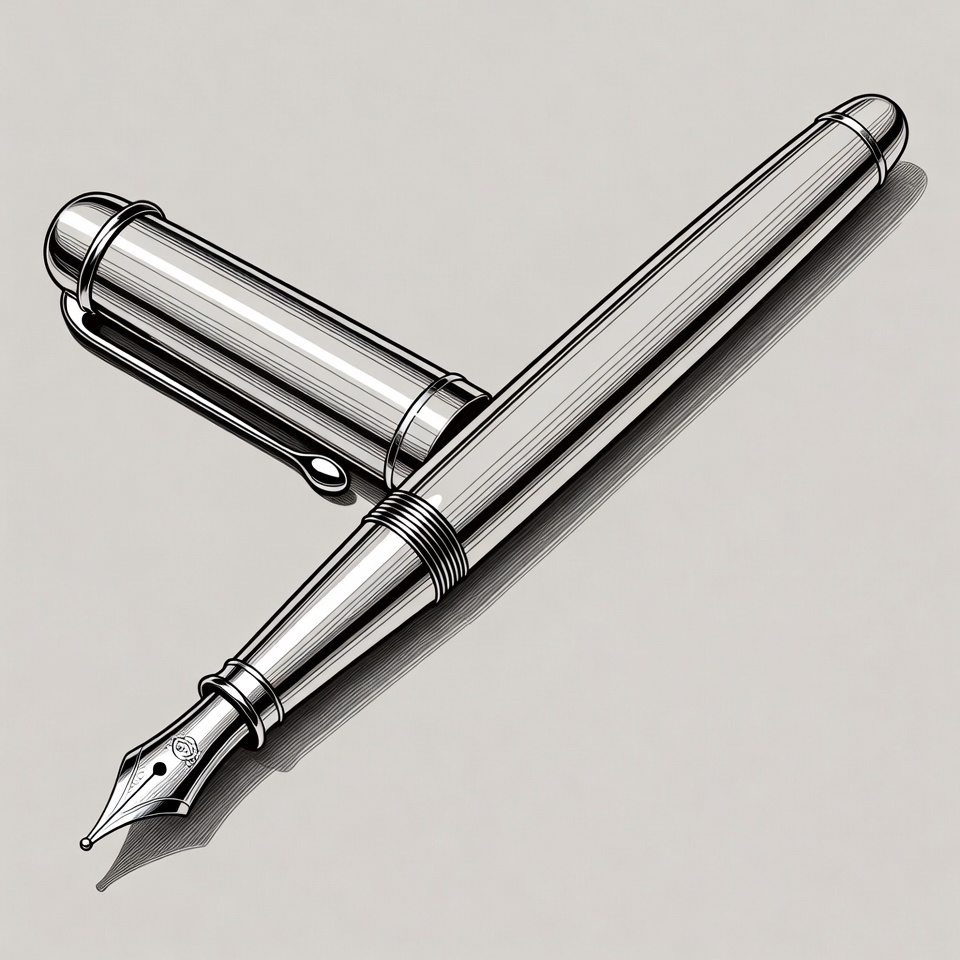 clipart, elegant pen, ink pen, isolated background, line drawing, luxury pen, metallic pen, pen cap, pen illustration, pen nib, shiny pen, silver pen, vector art, writing instrument, fountain pen