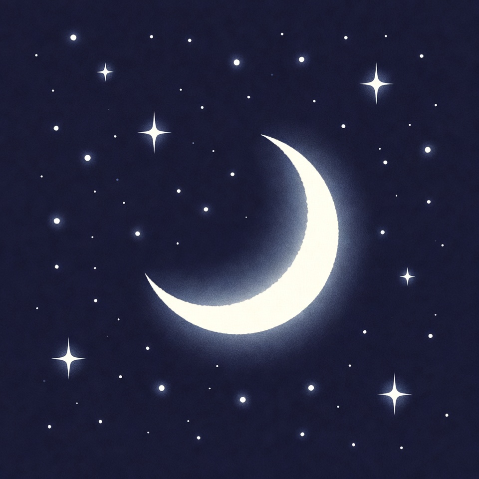 Glowing Crescent Moon with Stars