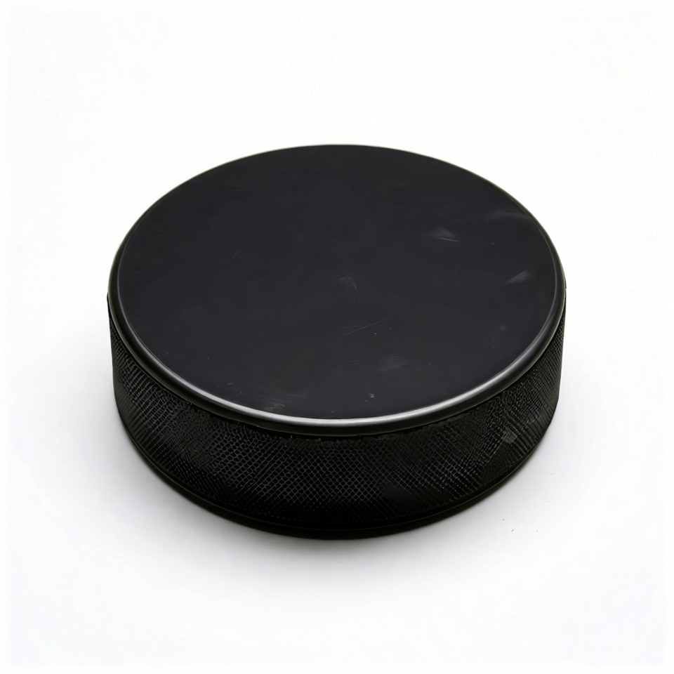 NHL puck, black puck, equipment, hockey, hockey equipment, ice, ice hockey, isolated background, puck, round puck, rubber puck, sport, sports gear, textured puck, hockey puck