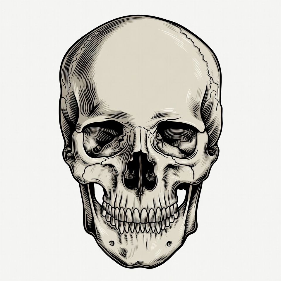 Detailed Human Skull Illustration