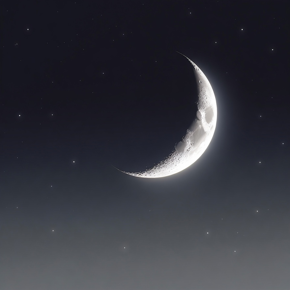 Crescent Moon in Starry Night Sky