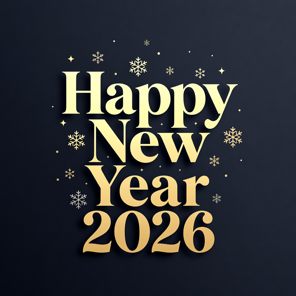 Happy New Year 2026 with Snowflakes