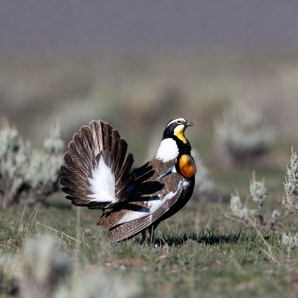 Western Meadowlark displaying tail feathers
