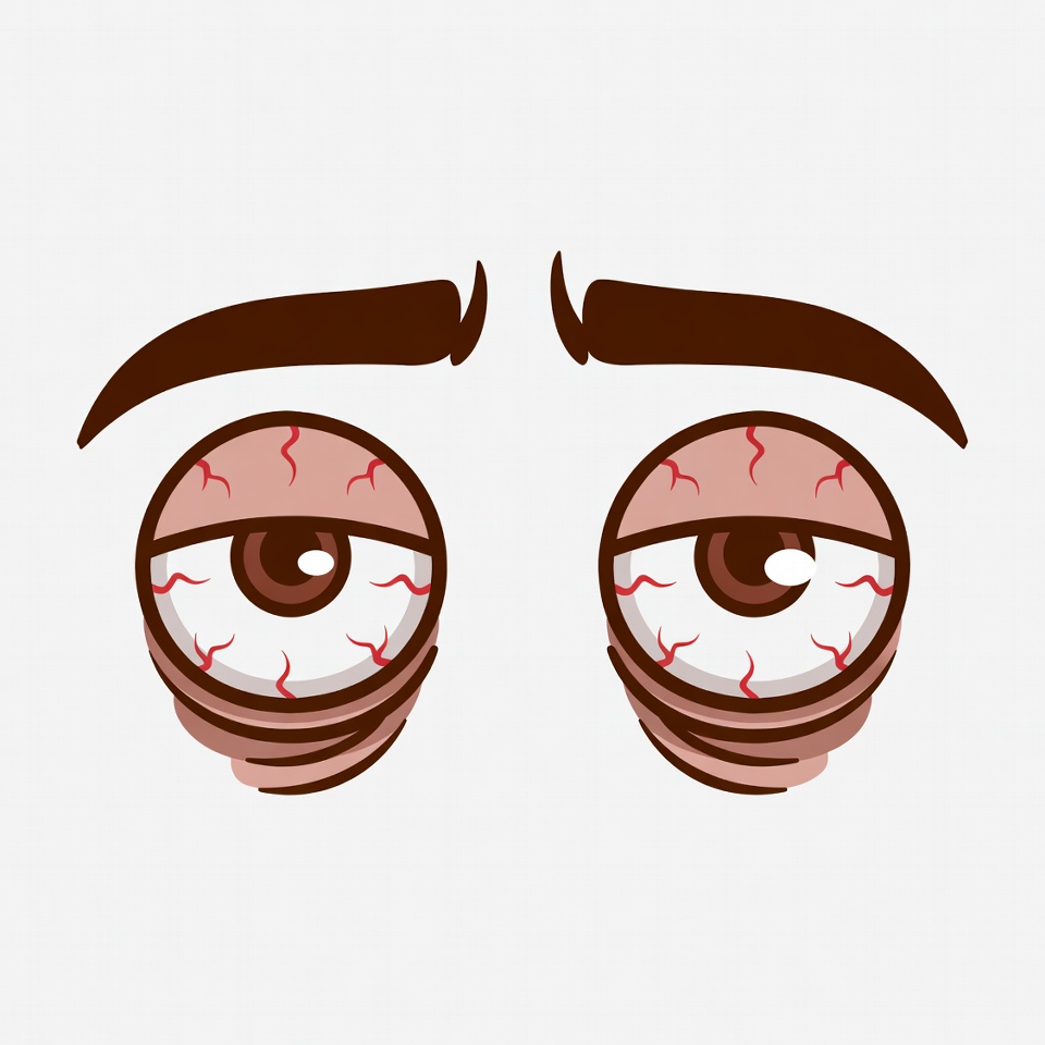 bloodshot eyes, cartoon eyes, clipart, droopy eyelids, exhausted eyes, eyebrows, fatigued eyes, illustration, isolated background, red veins, sleepy eyes, tired eyes