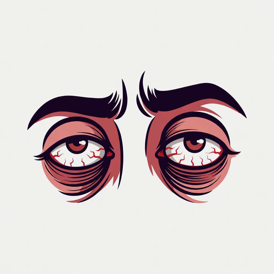 clipart, close-up, eye illustration, eyebrows, eyes, furrowed brows, heavy eyelids, illustration, irritated eyes, isolated background, pink skin, red eyes, red veins, sleepy eyes, tired eyes, vector art, bloodshot eyes