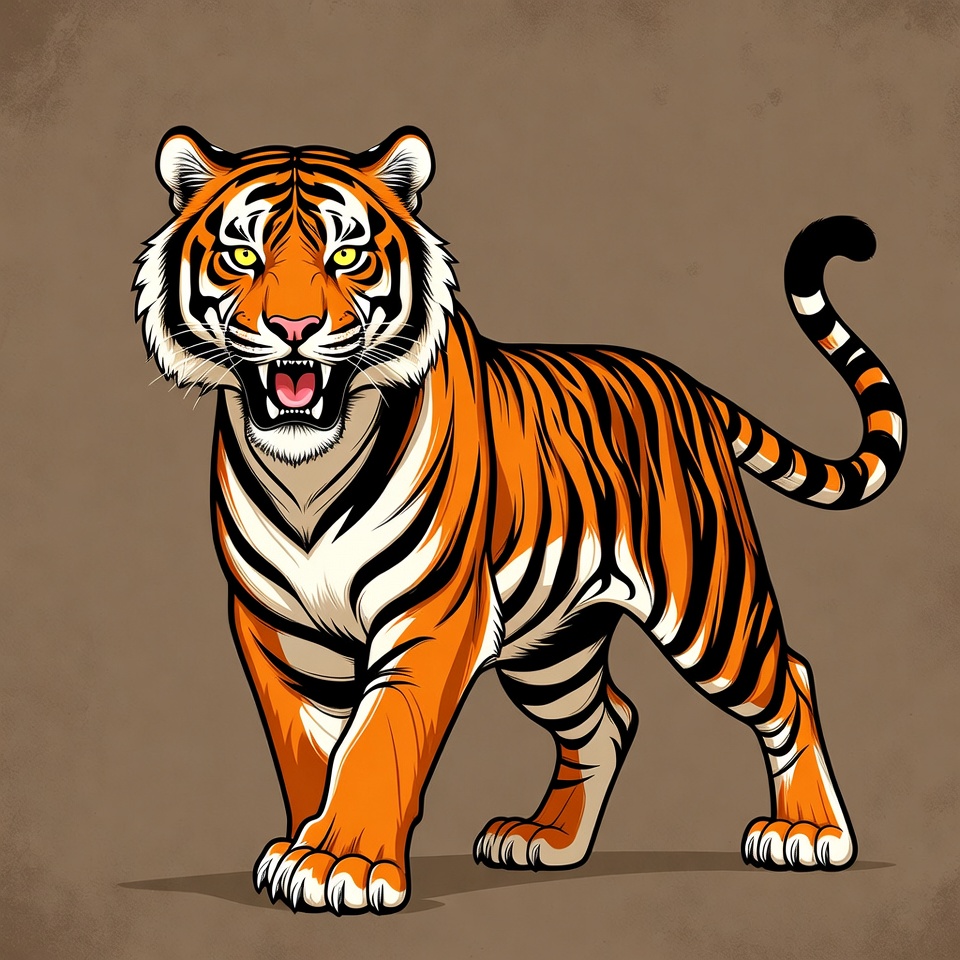 animal illustration, big cat, black stripes, cartoon tiger, digital art, fierce tiger, isolated background, orange tiger, roaring tiger, standing tiger, striped tiger, tiger illustration, tiger roar, vector tiger, wild animal, wildlife art, yellow eyes, tiger