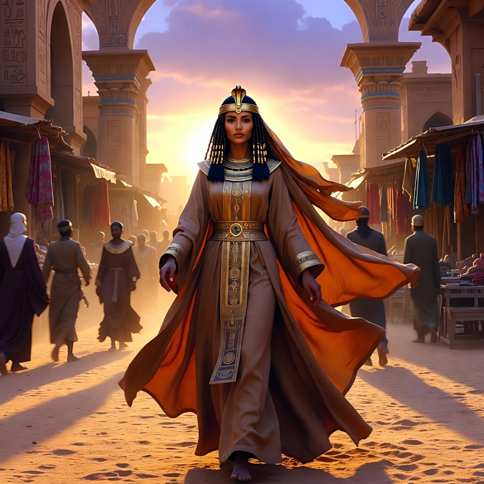 Egyptian Queen Walking in Ancient Market
