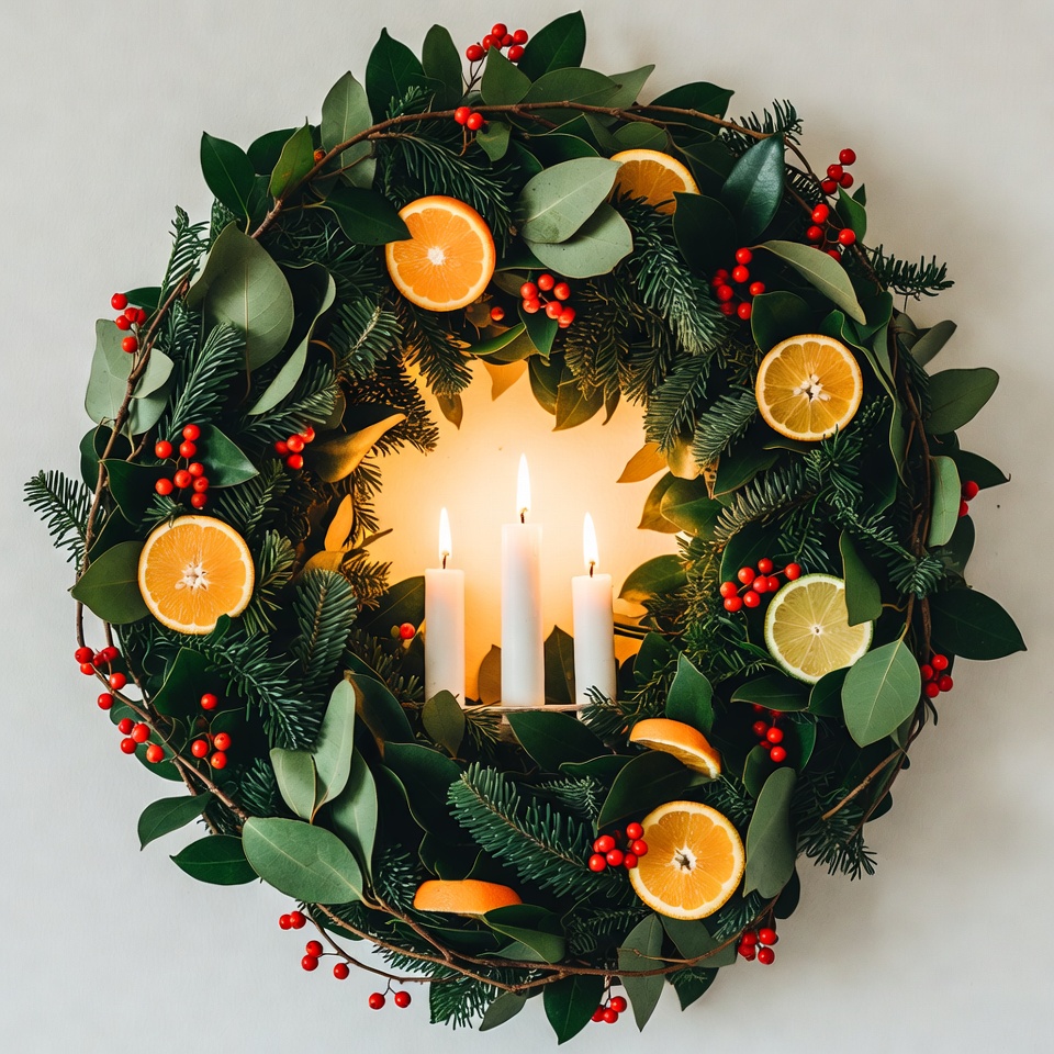 Christmas Wreath with Oranges and Candles