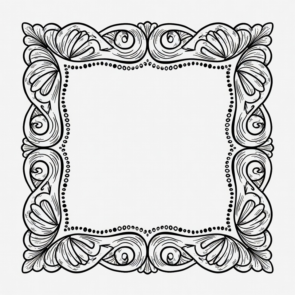 baroque frame, black frame, clipart, decorative border, dotted border, empty frame, filigree, floral design, floral frame, illustration, isolated background, line art, ornate frame, scrollwork, shell motif, square frame, swirling pattern, vector frame, vintage frame, frame