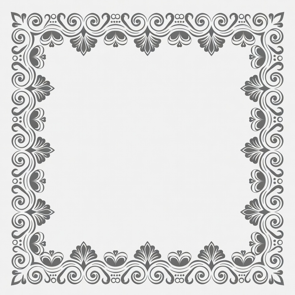 acanthus leaves, artistic, backdrop, clipart, decorative, design, edging, elegant, empty center, filigree, floral, flourish, frame, graphic, gray, illustration, isolated background, ornamental, ornate, pattern, scroll, square, symmetrical, template, vector, vintage, border