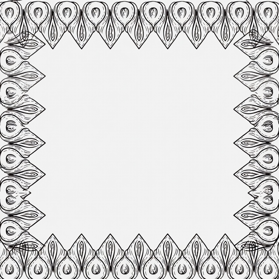 A intricate black line art border features repeating oval-shaped floral motifs with detailed inner patterns. The design forms a square frame around a large empty white space. The symmetrical elements create an elegant, decorative outline.