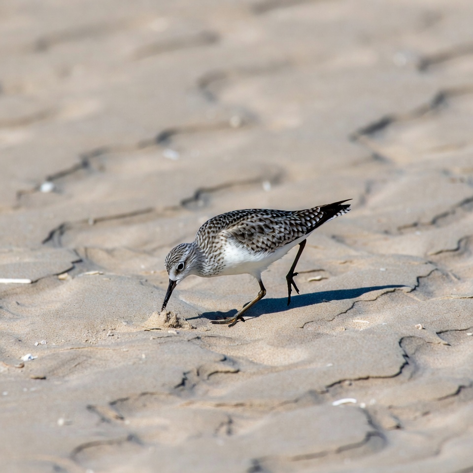 beach, bird, foraging, nature, outdoors, probing, sand, sandpiper, shorebird, shoreline, speckled feathers, thin bill, wet sand, wildlife, semipalmated sandpiper