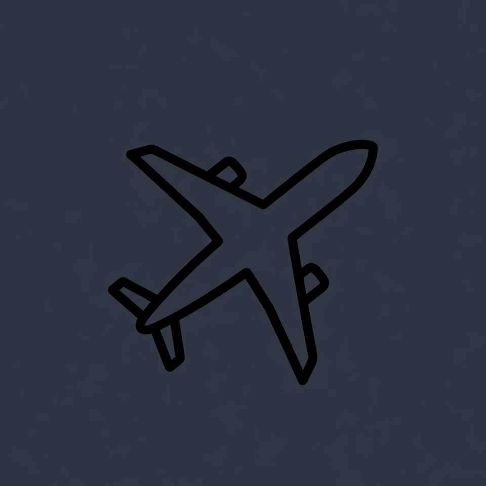 A simple black line drawing of an airplane viewed from above on a dark blue background. The illustration features a sleek fuselage with swept-back wings and tail fins. It is a minimalist clipart-style graphic isolated on a solid background.
