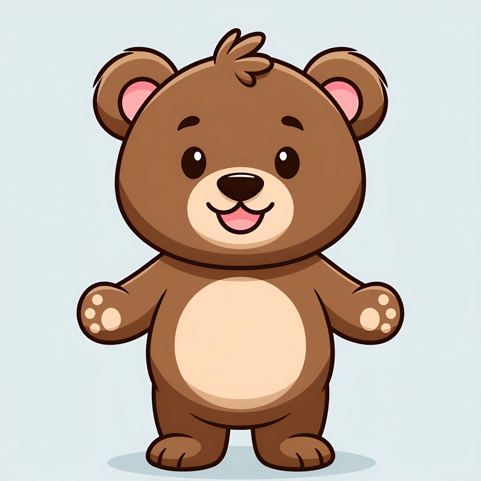 animal, arms outstretched, big eyes, brown bear, cartoon bear, clipart, cute bear, fluffy bear, happy bear, illustration, isolated background, kawaii bear, smiling bear, standing bear, vector bear, teddy bear