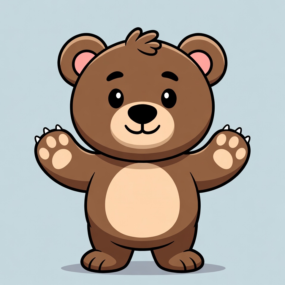 adorable bear, animal, arms outstretched, bear illustration, big eyes, brown bear, claws, clipart, cute bear, fluffy fur, fun bear, happy bear, isolated background, kawaii bear, pink ears, smiling bear, standing bear, teddy bear style, vector bear, cartoon bear