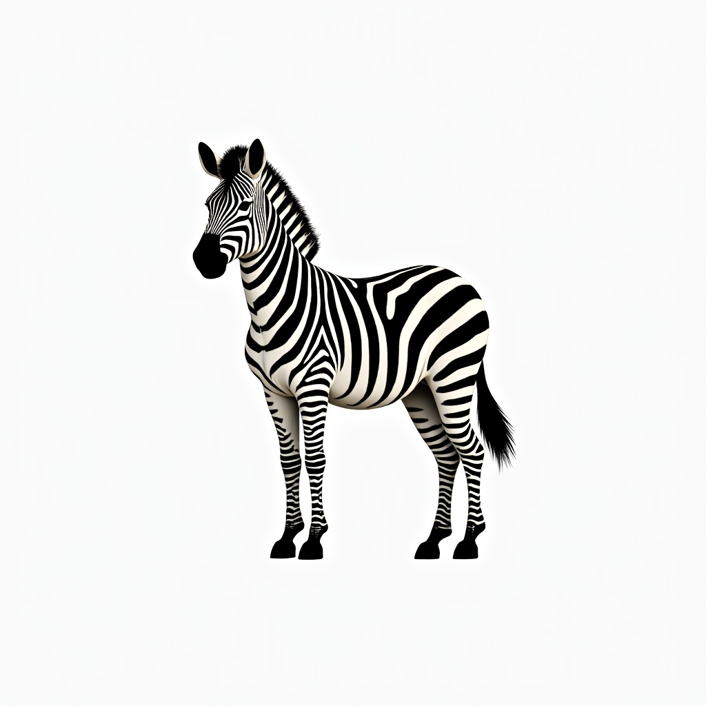 A detailed illustration of a zebra stands in a side profile view. The zebra features bold black and white stripes across its body, mane, and tail. It is depicted on a plain white isolated background.