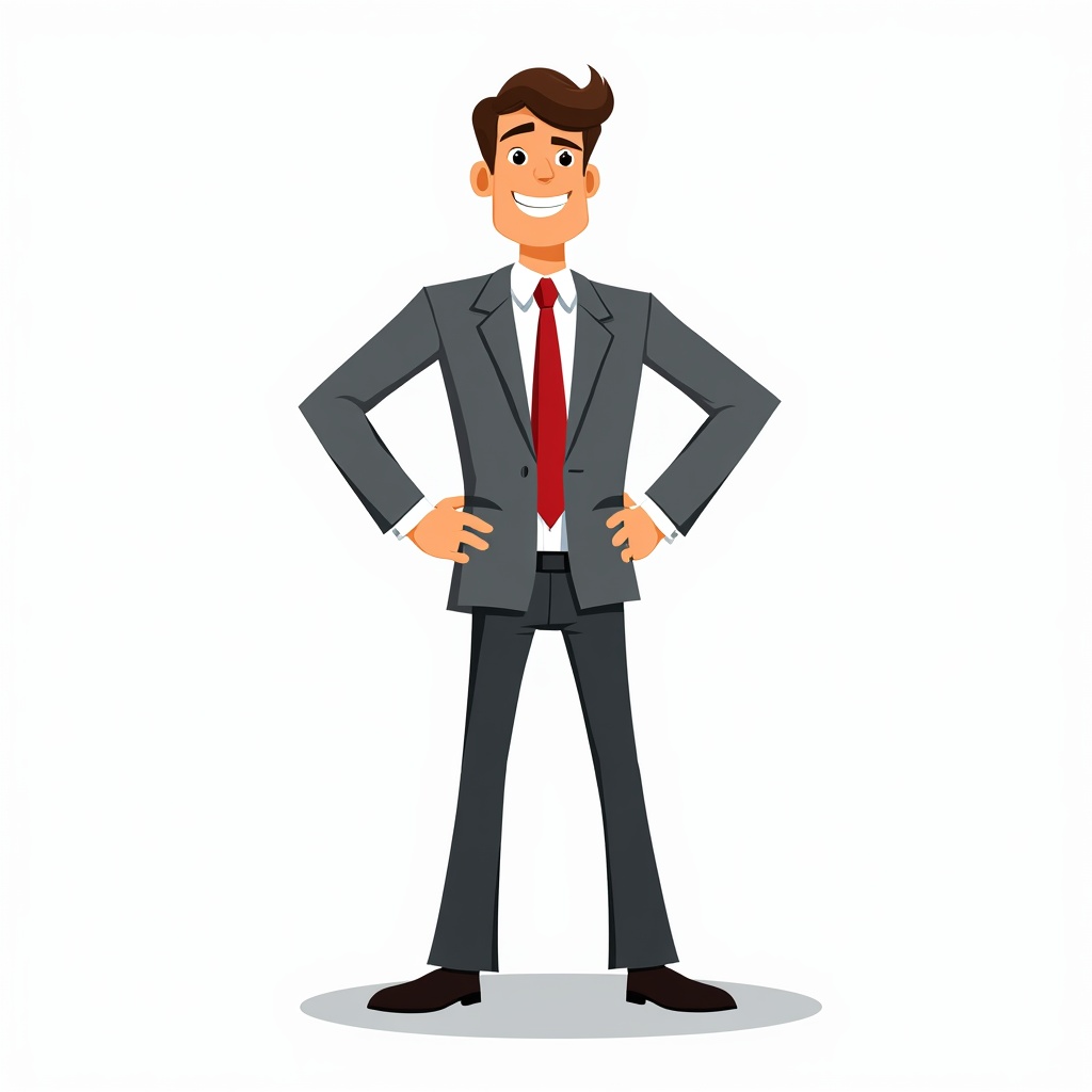 Cartoon man in suit standing confidently