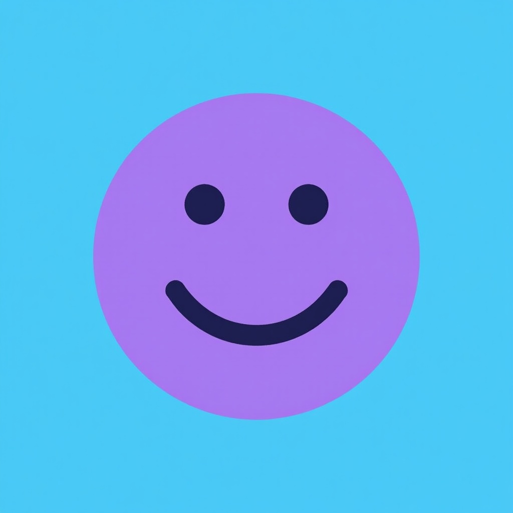 blue background, cartoon, clipart, emoji, eyes, face, graphic, happy face, icon, illustration, isolated background, mouth, purple, simple, smiley, smiley face