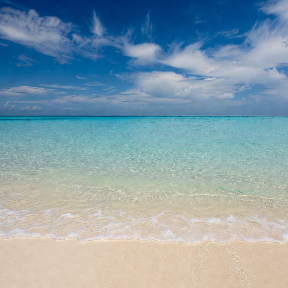 beachfront, blue ocean, blue sky, clear water, clouds, coast, horizon, idyllic, nature, ocean, ocean waves, paradise, sand, sandy beach, sea, seascape, serene beach, shoreline, summer, sunny, travel, tropical, turquoise water, vacation, waves, white sand, beach