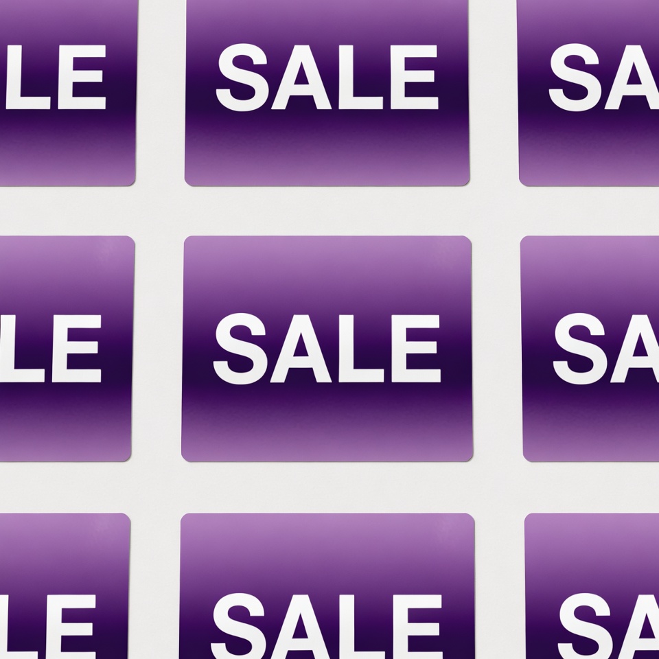 bold sale, clipart, discount tags, grid layout, illustration, isolated background, promotional badges, purple gradient, purple sale, retail discount, sale badges, sale graphics, sale signs, shopping sale, vector sale, white text, sale tags