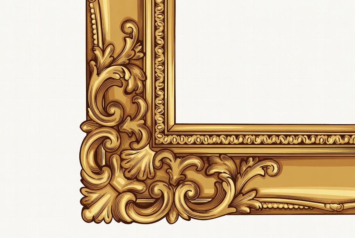 artistic frame, baroque frame, classic frame, clipart, decorative frame, detailed frame, elegant frame, empty frame, floral design, frame border, gold ornament, illustration, luxury frame, ornate frame, picture frame, rococo frame, scrollwork, vintage frame, white background, gold frame