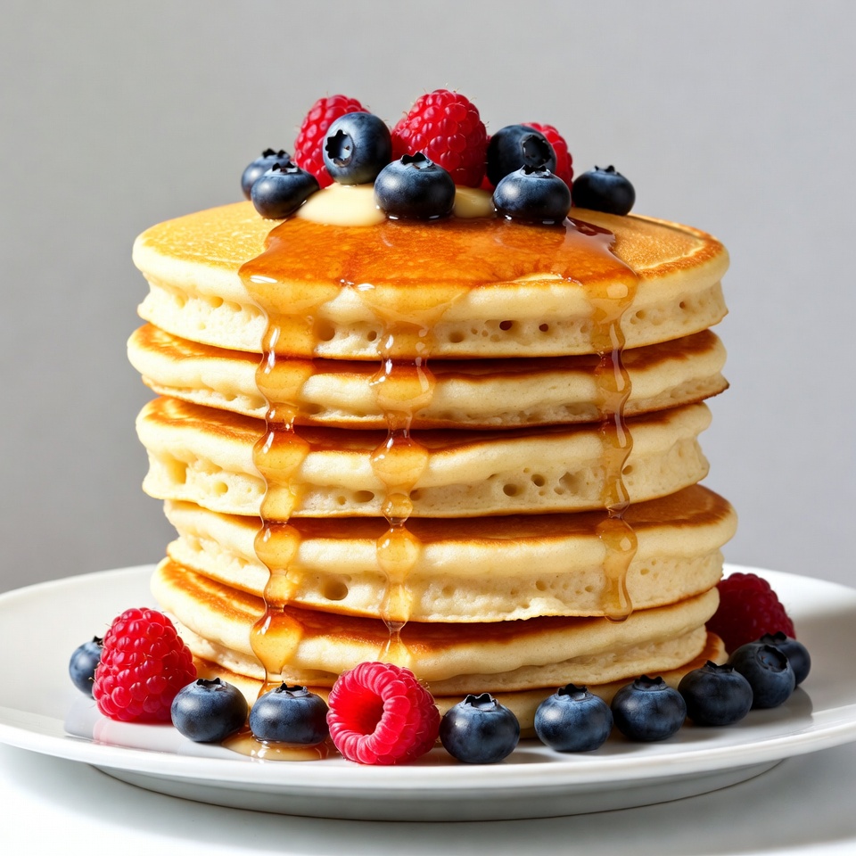 Pancake Stack with Blueberries and Raspberries