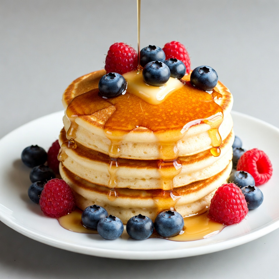 Pancakes with Maple Syrup and Berries