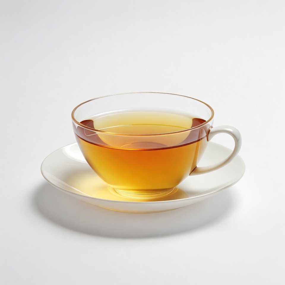 afternoon tea, beverage, cup, drink, glass cup, herbal tea, hot tea, isolated, saucer, steaming tea, teacup, white background, white saucer, tea