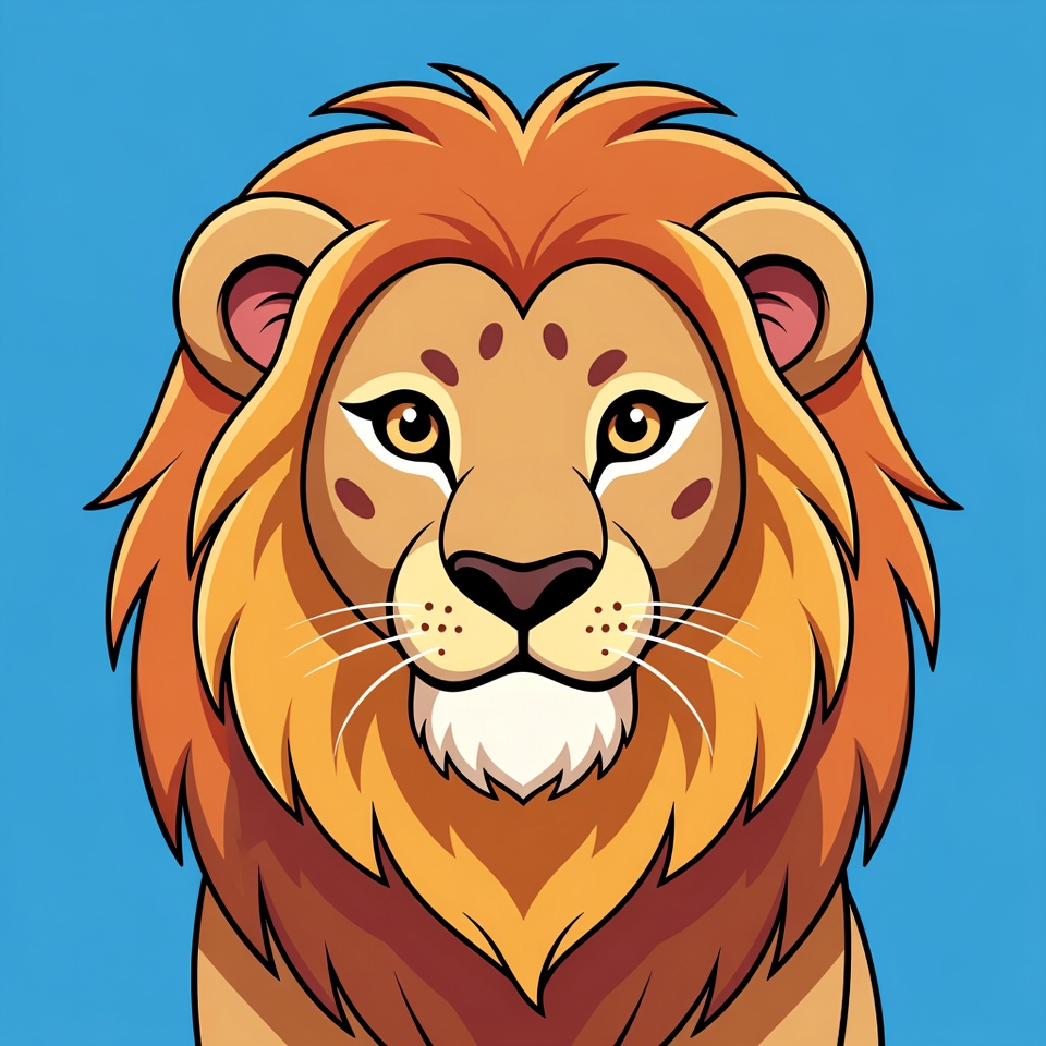 animal, animated lion, blue background, cartoon lion, clipart, cute lion, furry lion, illustration, isolated background, lion face, lion mane, lion portrait, majestic lion, orange lion, vector lion, wild animal, yellow eyes, lion