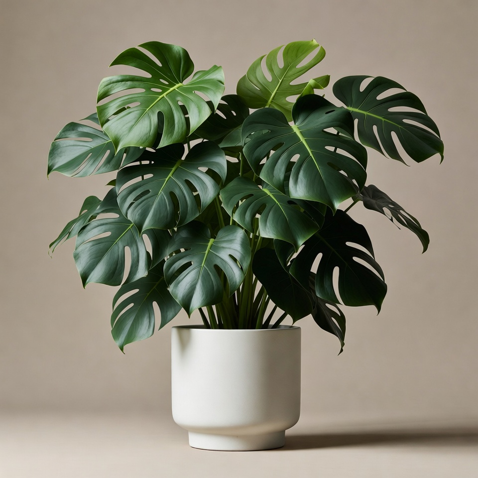 Large Monstera Plant in White Pot