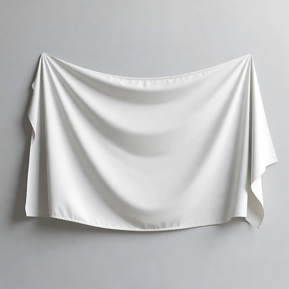 blank fabric, clean fabric, creases, curtain, drape, draped fabric, fabric texture, gray wall, hanging cloth, isolated background, mockup, smooth material, soft folds, textile, wall hanging, white sheet, white fabric