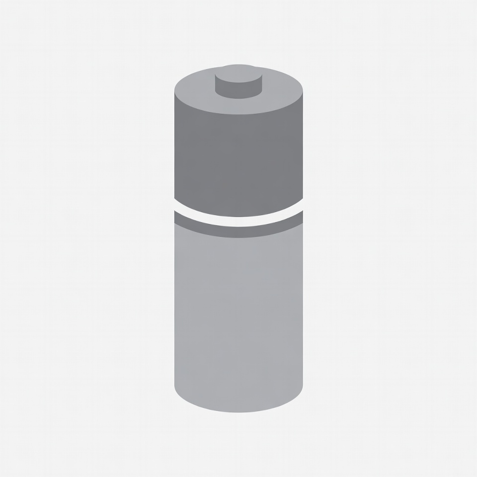 A simple gray AA battery stands upright on a white background. It features a metallic top terminal and a gray body with a subtle white band near the base. The illustration has a clean, minimalist 3D style.