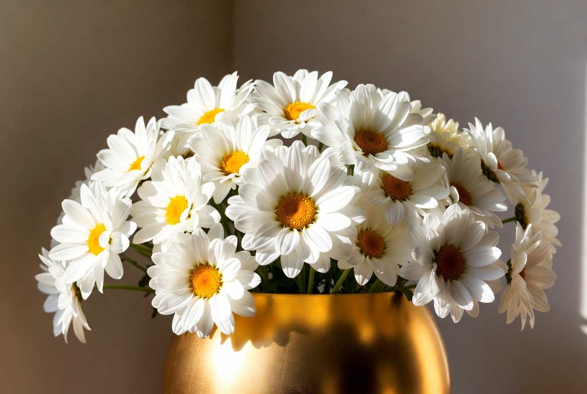 White Daisies in Golden Vase