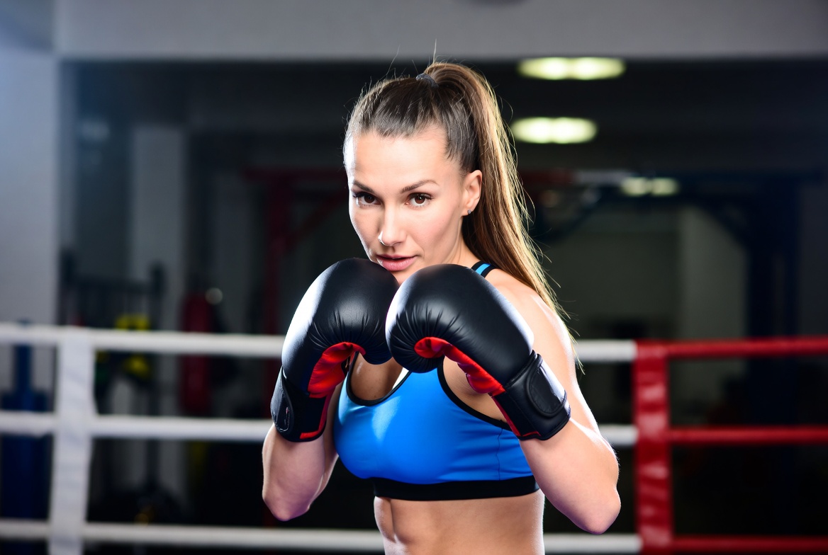 Woman boxing with gloves in ring