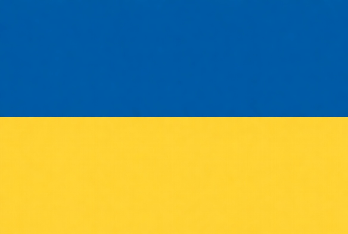 The flag of Ukraine features two horizontal bands. The top band is blue and the bottom band is yellow.