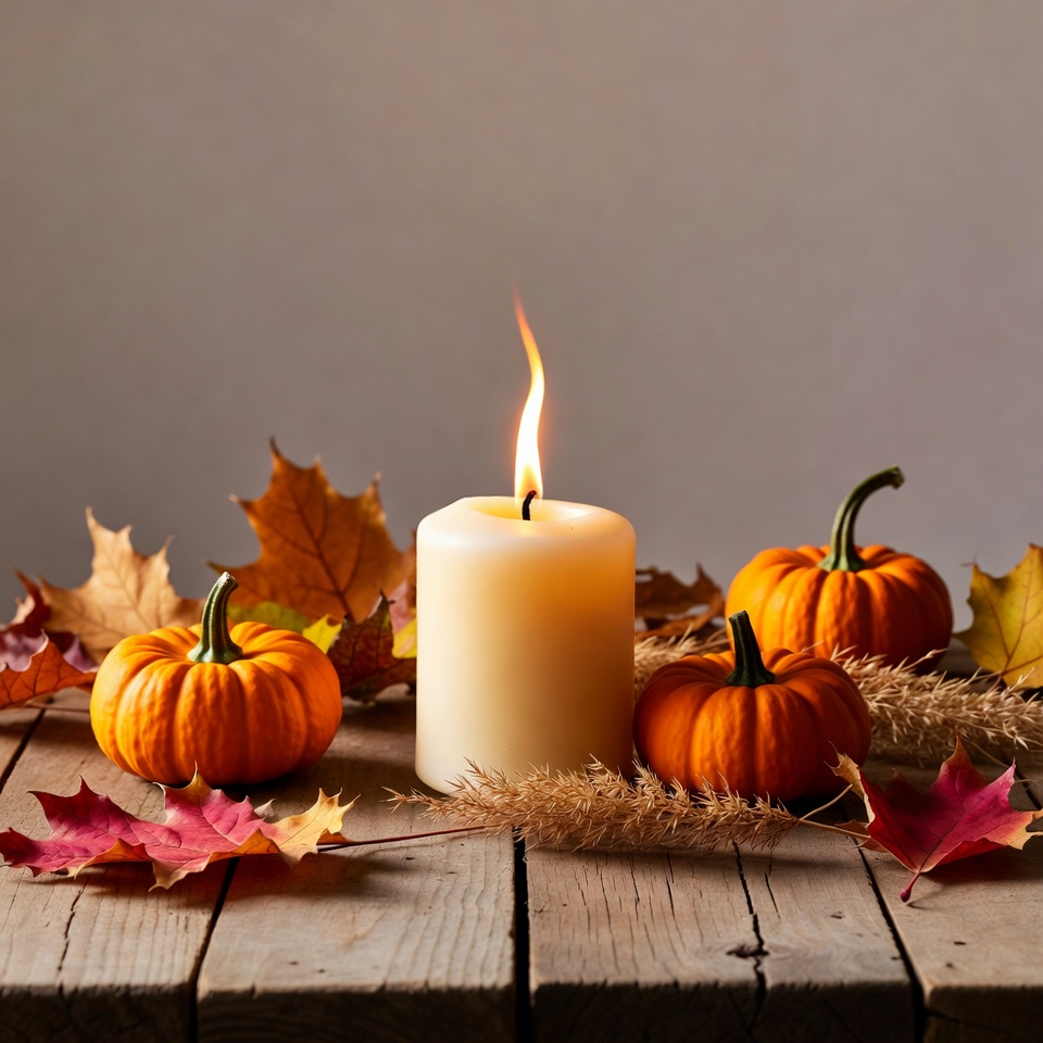 Pumpkins Candle Autumn Leaves
