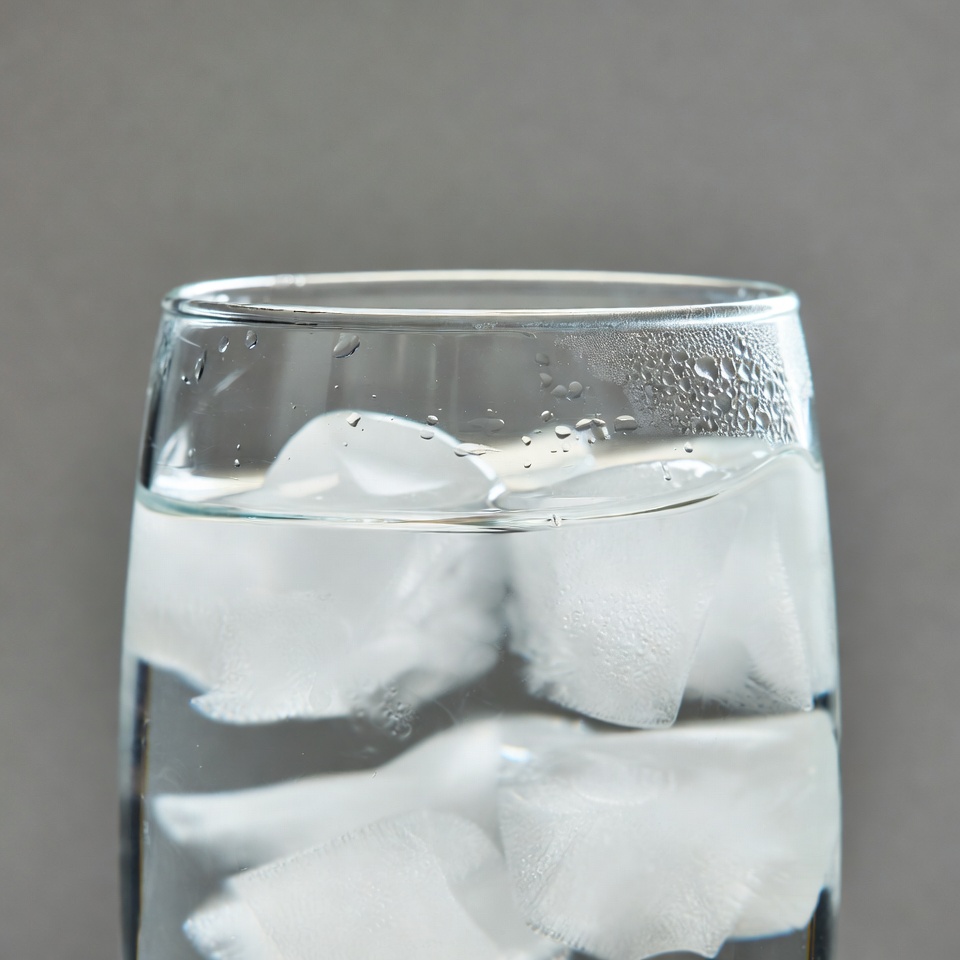 beverage, clear glass, close-up, cold drink, condensation, droplets, frozen water, hydration, ice cubes, ice water, isolated background, liquid, refreshment, studio shot, transparent, tumbler, water, glass