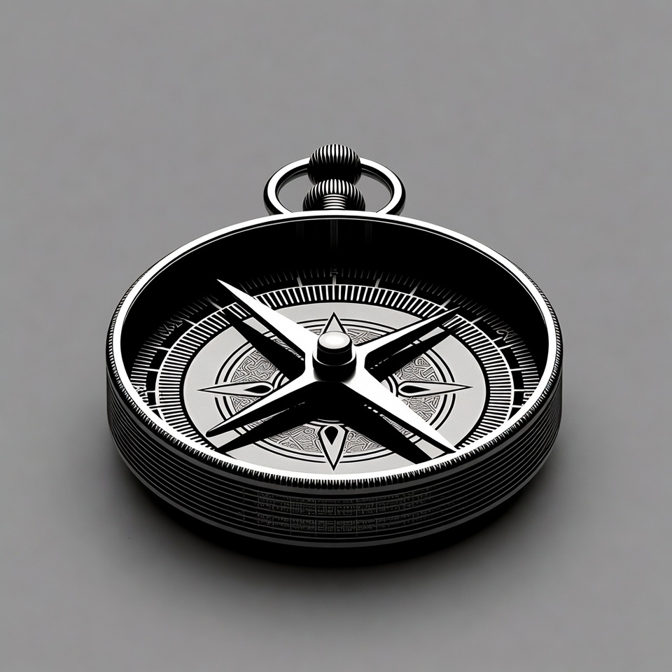 3D render, adventure gear, directional compass, directions, explorer compass, gray background, isolated background, metallic, navigation tool, north arrow, pocket compass, silver compass, travel accessory, vintage compass, compass