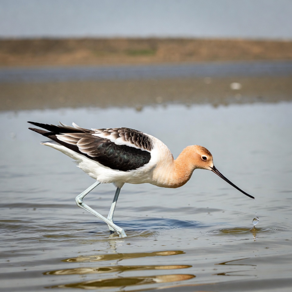 bird, black wings, isolated background, long beak, long legs, nature, pink legs, reflection, shallow water, shorebird, stilt, wading bird, water bird, wetland, white plumage, wildlife, black-winged stilt