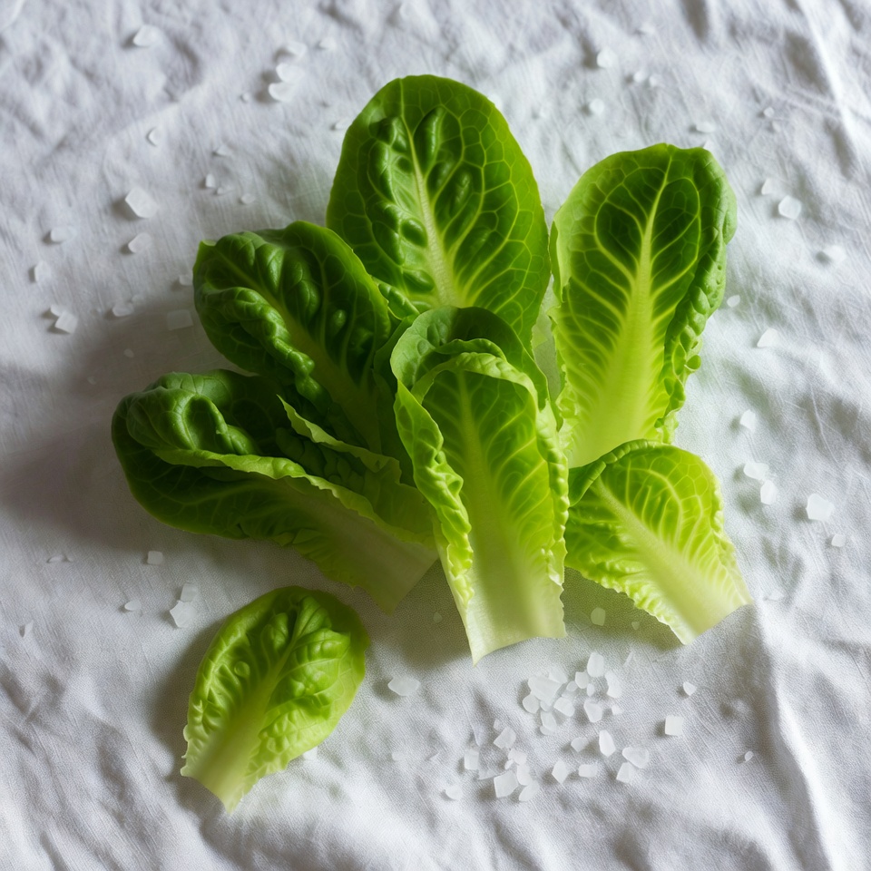 Fresh Romaine Lettuce Leaves with Salt