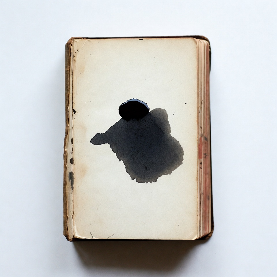 Open Antique Book with Ink Blot