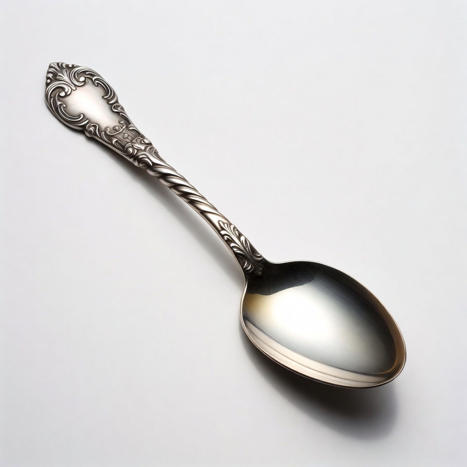 antique silverware, decorative spoon, elegant cutlery, filigree design, floral pattern, isolated background, ornate spoon, polished bowl, tableware, twisted handle, utensil, vintage spoon, silver spoon