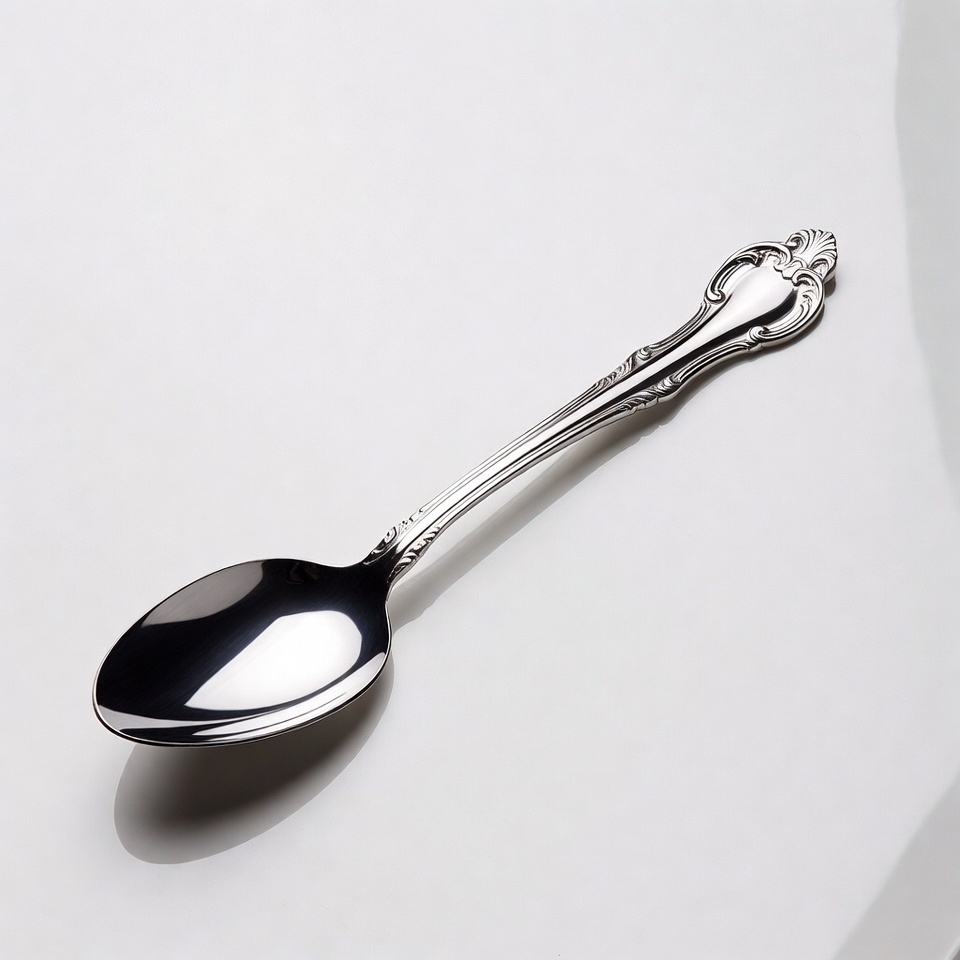 closeup, cutlery, eating utensil, elegant design, isolated background, kitchen utensil, ornate handle, polished spoon, shiny metal, silverware, spoon, tableware, vintage spoon, white background, silver spoon