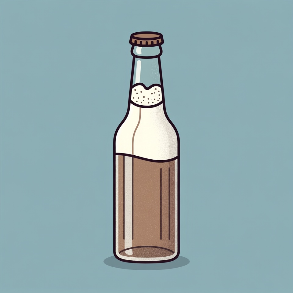 alcohol, beer, beverage, blue background, bottle, brown cap, clipart, cold beer, draft beer, drink, foam, froth, glass bottle, illustration, isolated background, line art, vector art, beer bottle